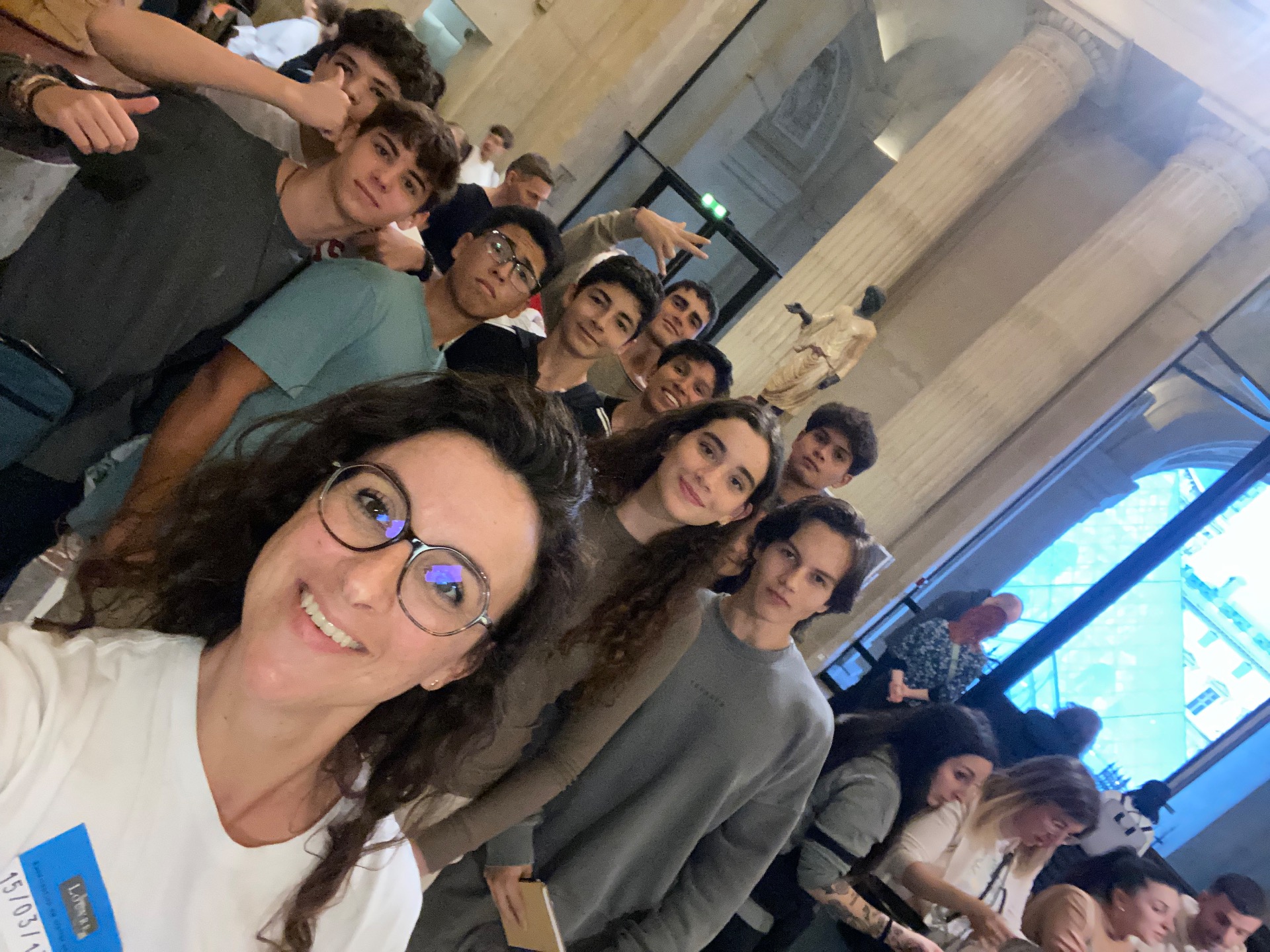 En étant au Louvre, j'ai remarqué que l'œuvre L'Amour et Psyché faisait partie des sculptures du programme qu'il fallait chercher et je voulais absolument la voir car je connaissais déjà la sculpture et l'histoire derrière elle m'intéressait énormément. Néanmoins on devait également chercher les autres pièces d'art, alors à un moment on se trouvait au niveau 2 en train de chercher le tableau de Louis XIV lorsqu'on s'est rendu compte que la peinture n'était pas dans le musée dû aux rénovations pour les Jeux Olympiques. Alors j'ai proposé d'aller voir cette sculpture parce que je voulais vraiment lui prendre une photo et qu'on avait uniquement 15 minutes avant de devoir rejoindre le groupe et partir. Cependant, en demandant aux travailleurs du Louvre on a réalisé que l'œuvre se trouvait vraiment à l'autre bout d'où on était. Comme je voulais vraiment voir cette magnifique sculpture, on a dû courir par toutes les salles et tous les escaliers possibles afin de trouver L'Amour et Psyché. Finalement, on a trouvé cette sublime sculpture et j'ai pu prendre ma précieuse photo.