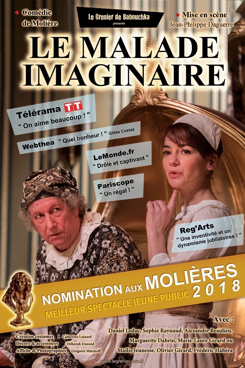 C'est au cours d'une représentation du « Malade Imaginaire » que Molière poussa le premier de ses derniers soupirs. Notre grand homme, déjà malade, écrivit la plus belle de ses farces pour régler ses comptes avec la médecine. Cette comédie est une véritable machine théâtrale qui, par ses enjeux et ses extraordinaires dialogues, tient le spectateur en haleine tout en le faisant rire comme une baleine."